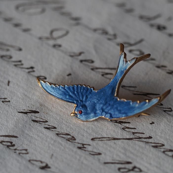1920年代に作られた、ブルーエナメルのツバメのブローチ。