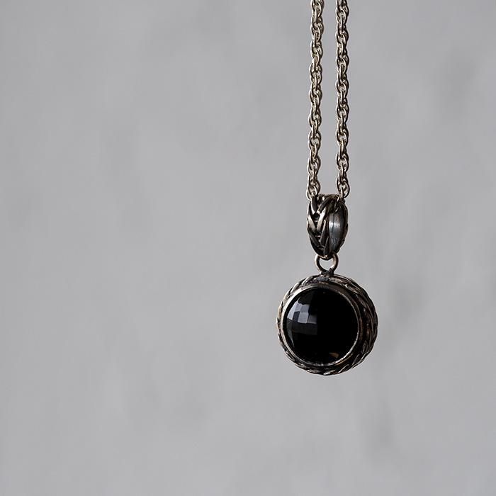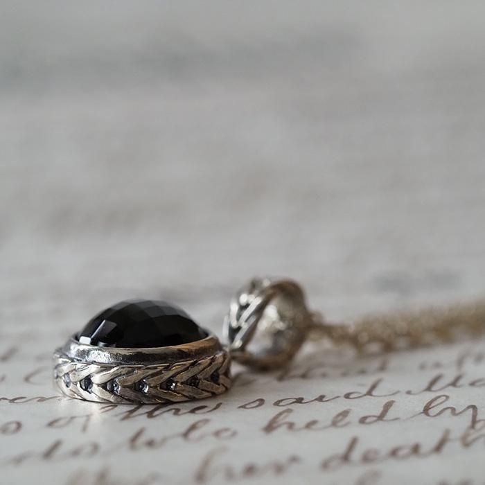 深い黒の輝きが印象的な、ファセットカットのオニキスを使用したネックレス。