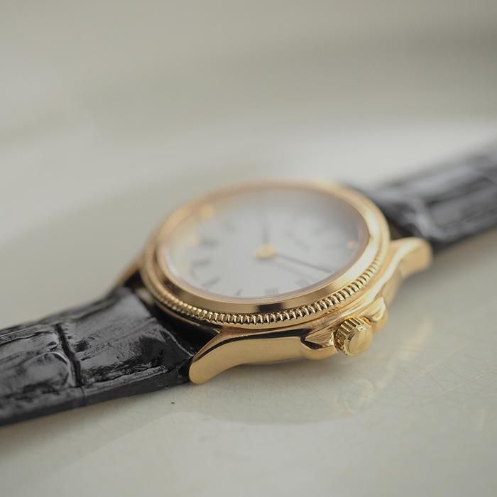 ロレックスにも見られる細かい刻みの入ったコインエッジベゼルの装飾など、クラシックな雰囲気。