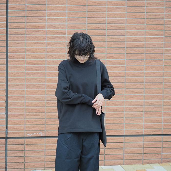 首元をすっきりと見せるモックネックは、重ね着にも最適。