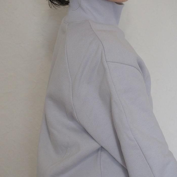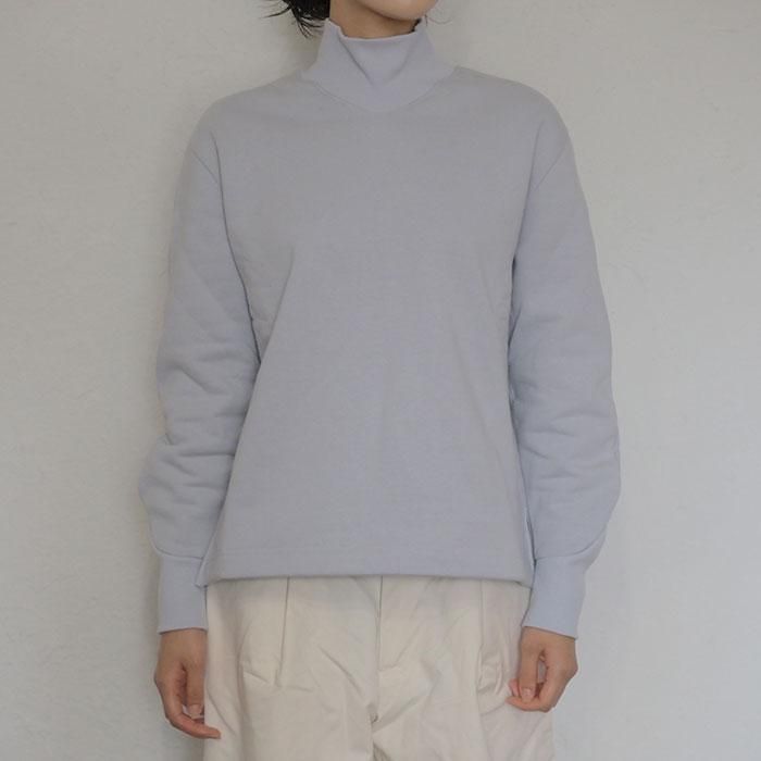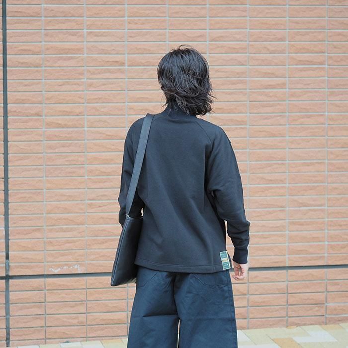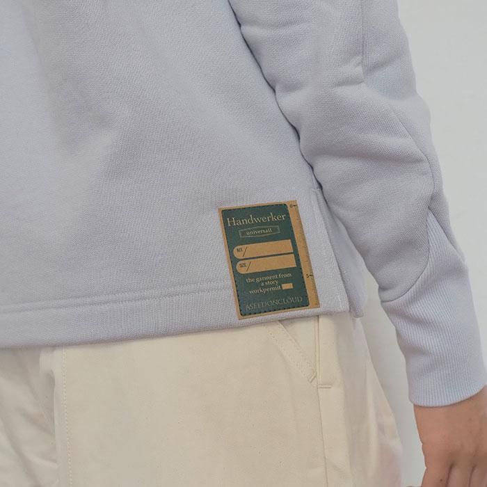 Handwerkerのモックネックスウェットは、シンプルな中にも丁寧に作り込まれたディテールが際立つ一枚。程よい厚みのコットン素材は、裏側が起毛しておりふっくらとした肌触りで着心地も快適。