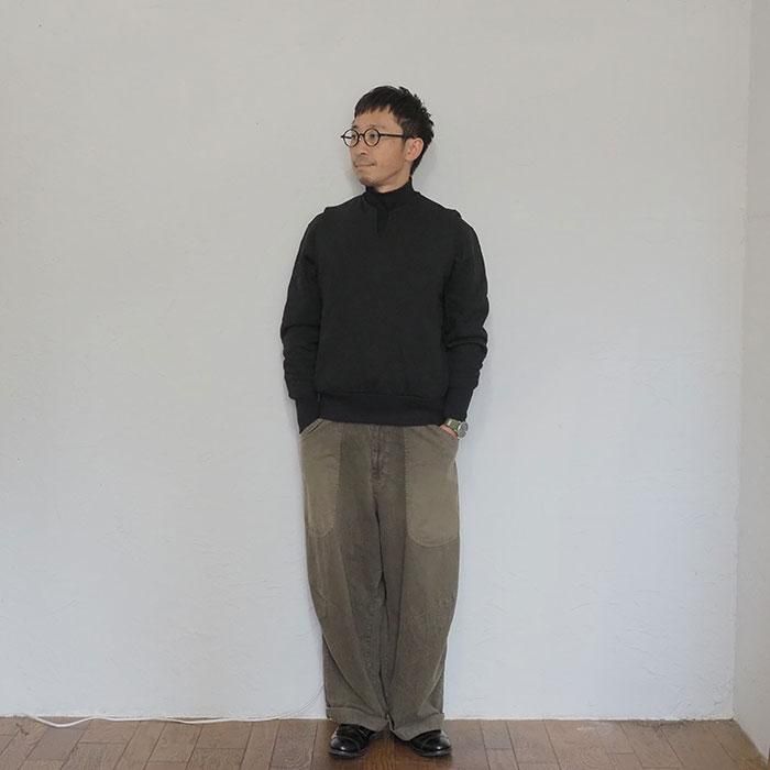 同じ色でモックネック スウェットとの重ね着も素敵です。
